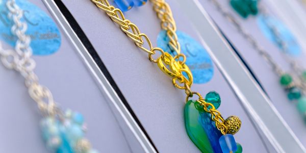At The DLynn Creative, we started as a small handmade jewelry business specializing in one-of-a-kind, kiln-formed, fused glass jewelry. In 2024, our love for fused glass expanded to home accessories and decorations and now they form an equal part of our product offerings.